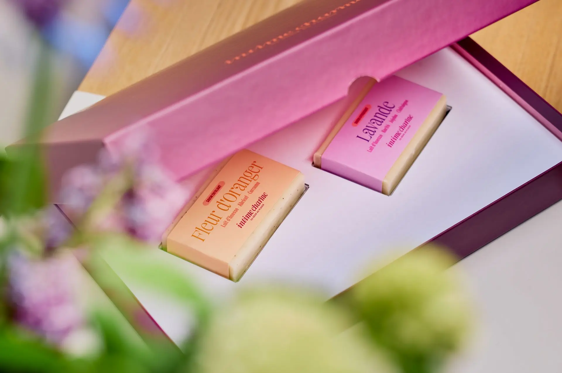 Pour toute commande dès 50€*, recevez un coffret de deux savons artisanaux au lait d'ânesse — Lavande & Fleur d'oranger — glissé dans votre colis. Offre valable jusqu'au 31 mai 2026, dans la limite des stocks disponibles. (*hors frais de port)
